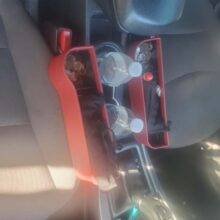 Each organizer features a phone slot, charger hole, drink holder space, and card slot for organized storage.