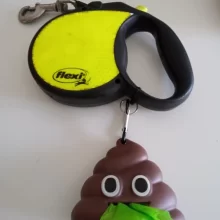 Have your waste bags always by your side neatly tucked away in this convenient storage bag in the form of a poop emoji, a cute little take on a modern solution.