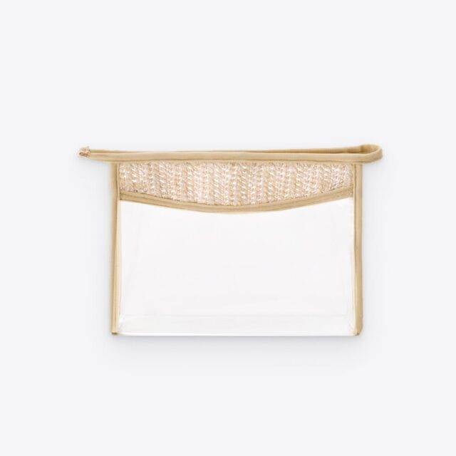 This lovely cosmetic bag is made with durable, transparent PVC material and features a large zipper opening.